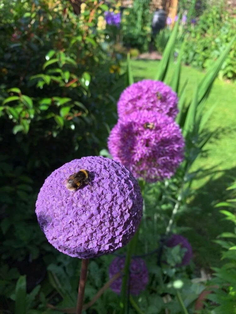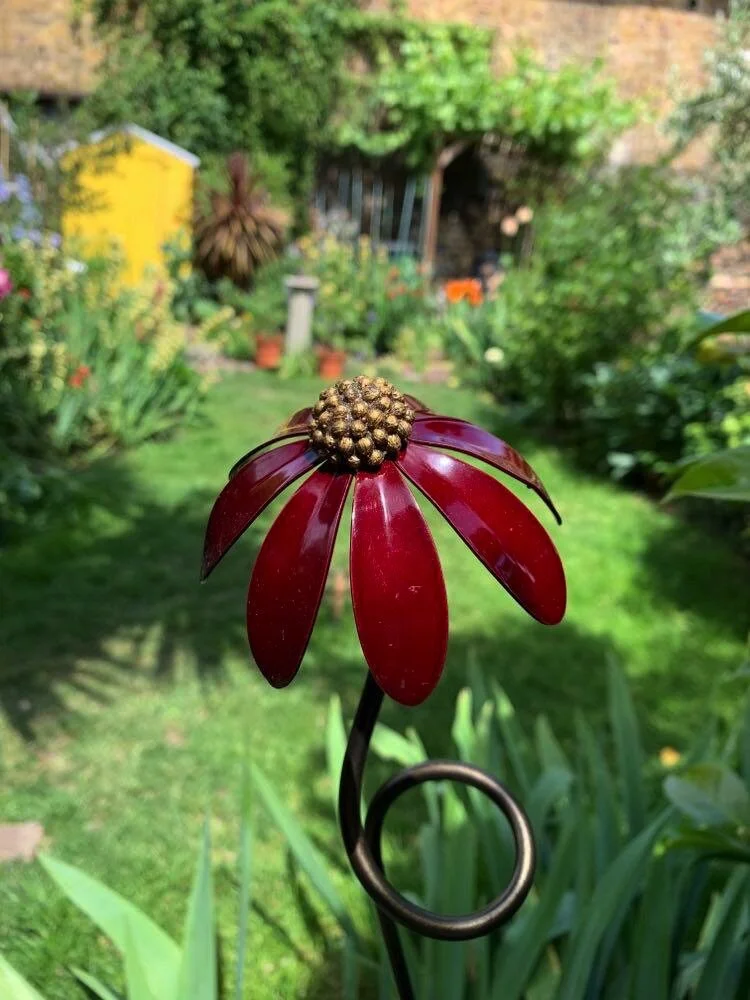 My partner and I moved here in 2017 and we have focused on adding colour to our little plot and Paul’s sculpture add height and interest in the borders. Importantly, we’ve used the supports to compliment the plants and mark off the spaces where they will return after their winter break.