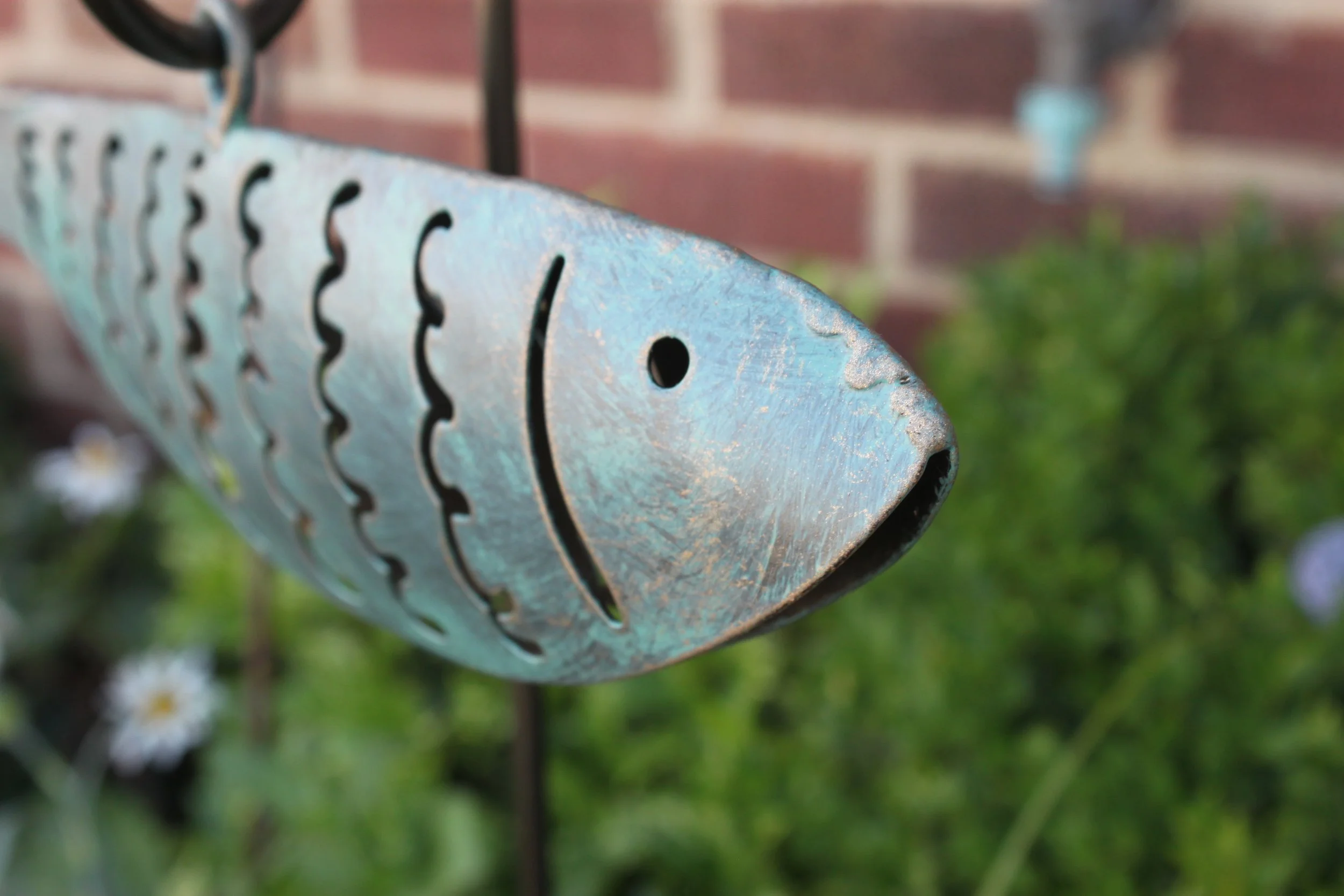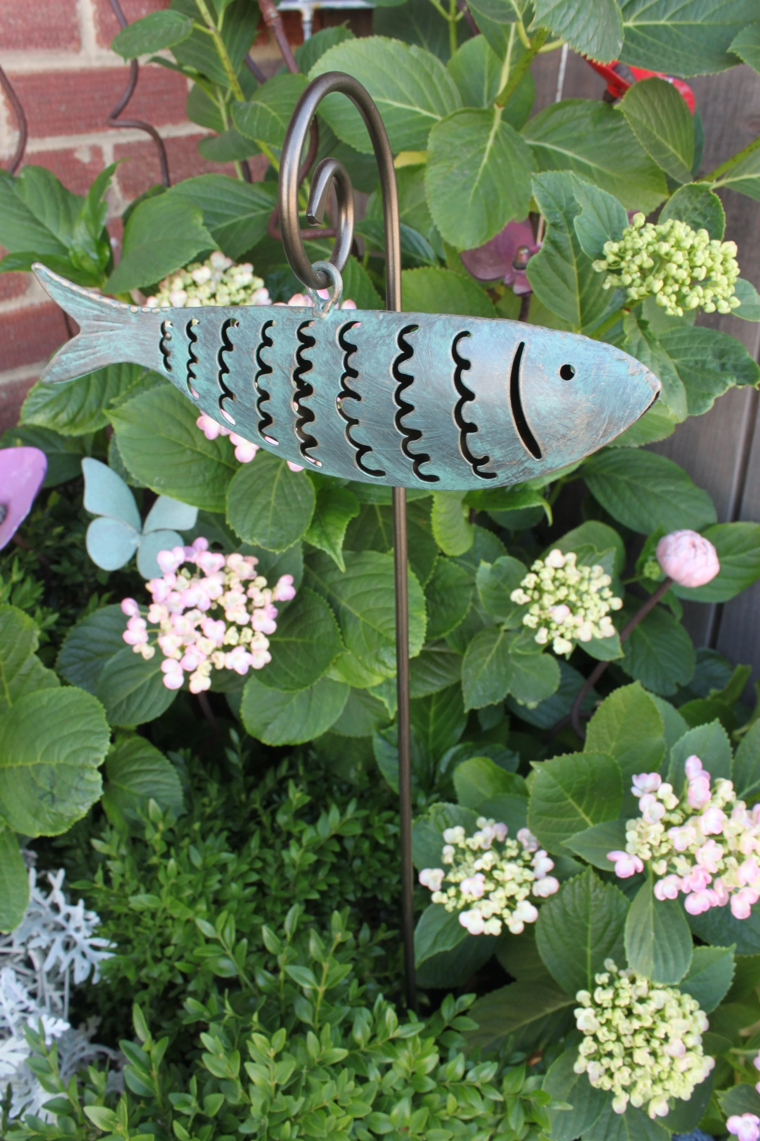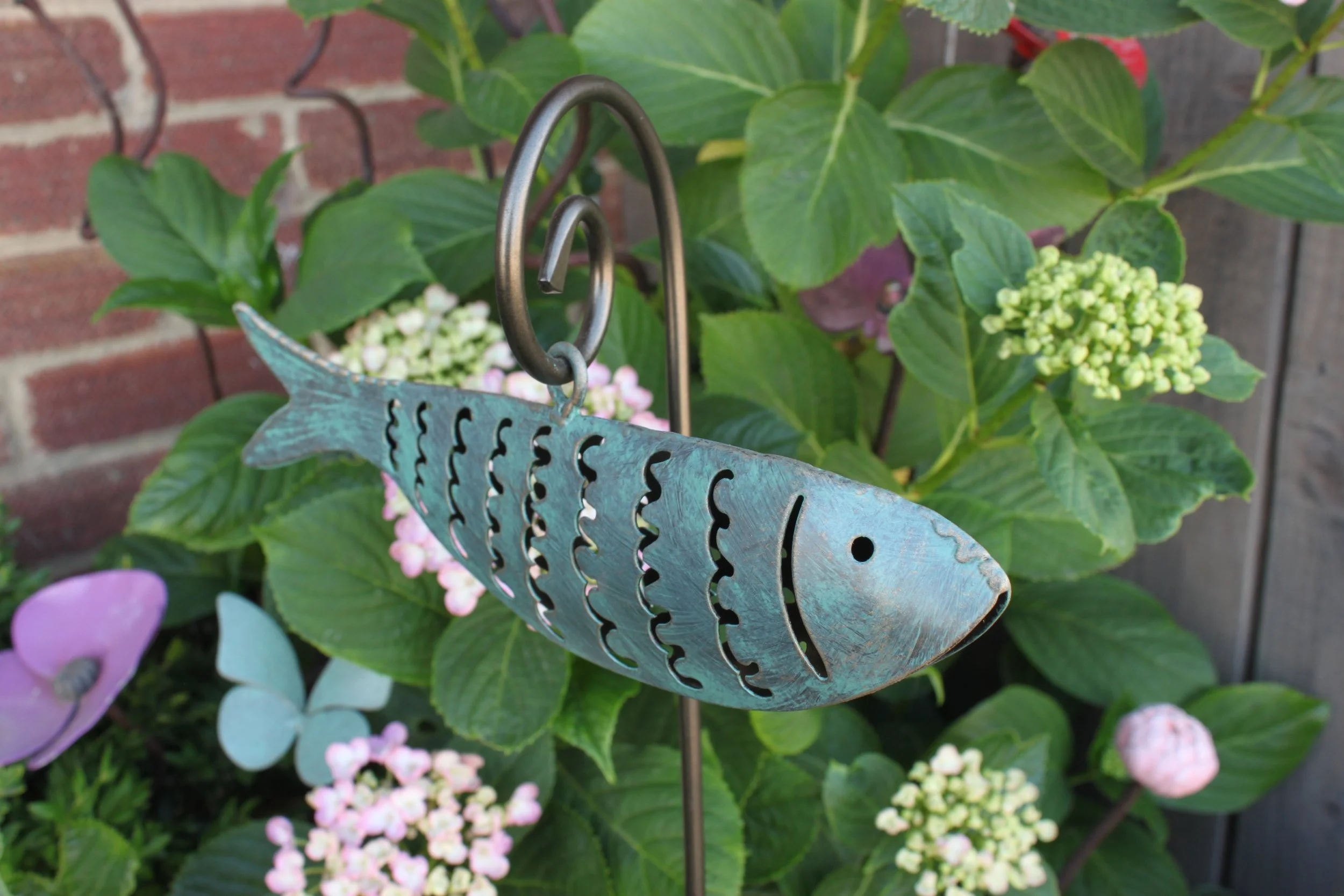 Powder-coated Stainless steel fish with verdigris effect finish